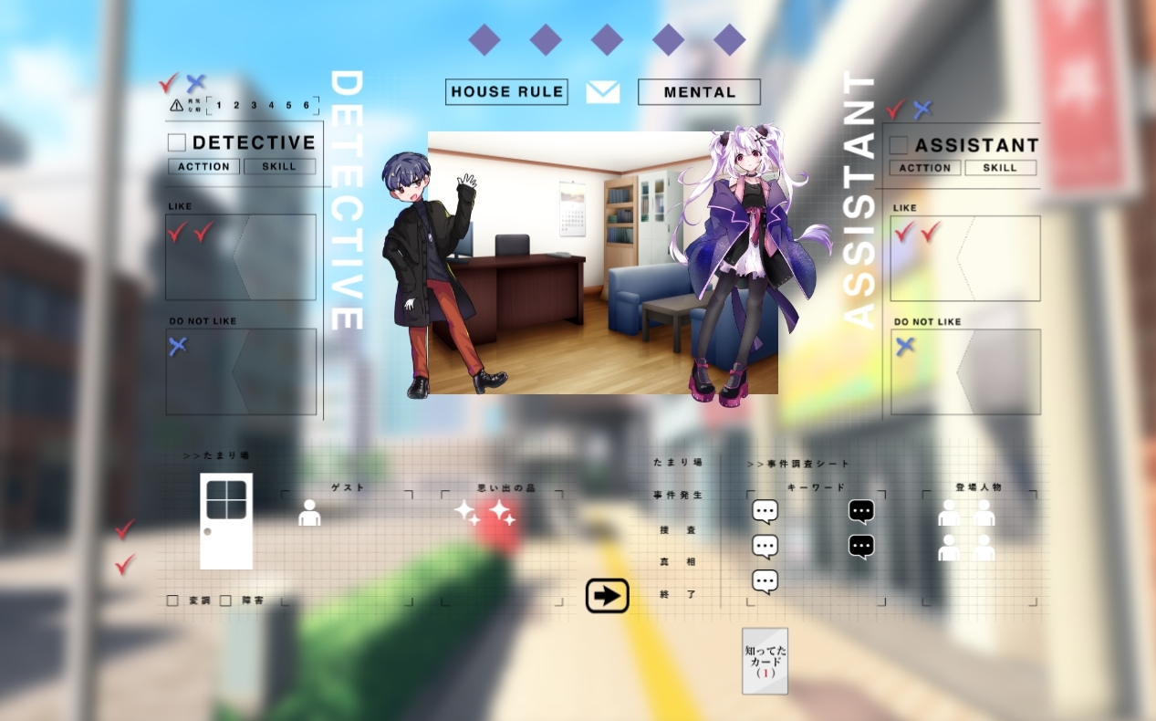 助手をやってます。フタリソウサ、GMが探偵でも良い気はするしシナリオによると思うんですが、助手の方が動きやすい感じがするんですよね。
